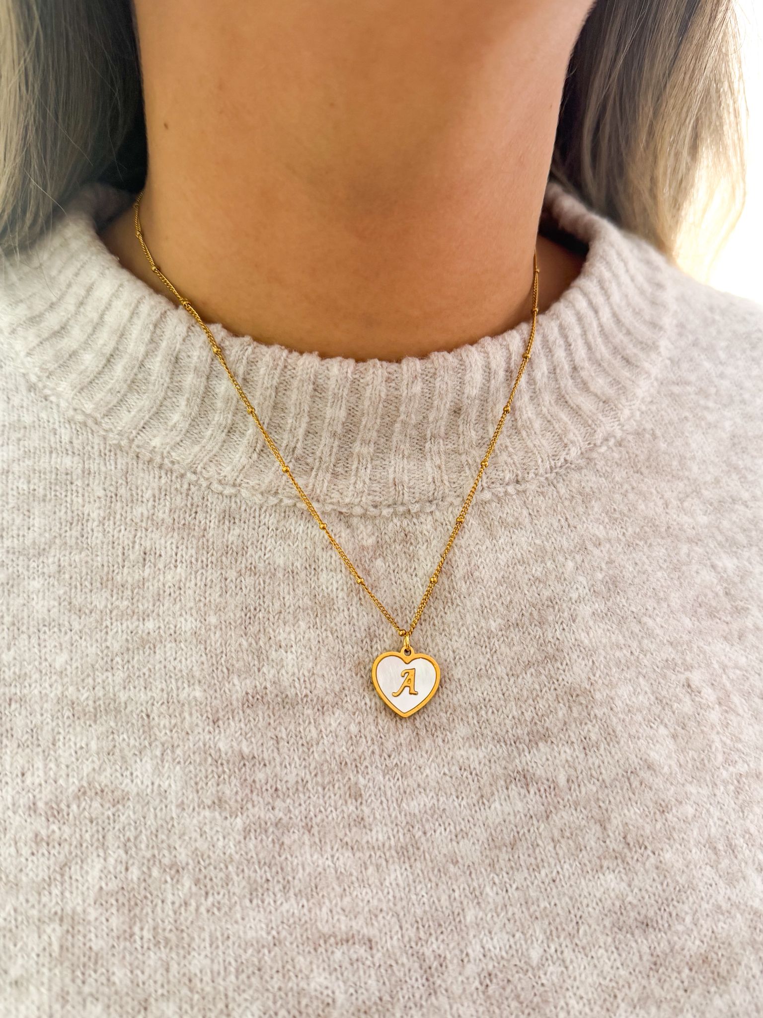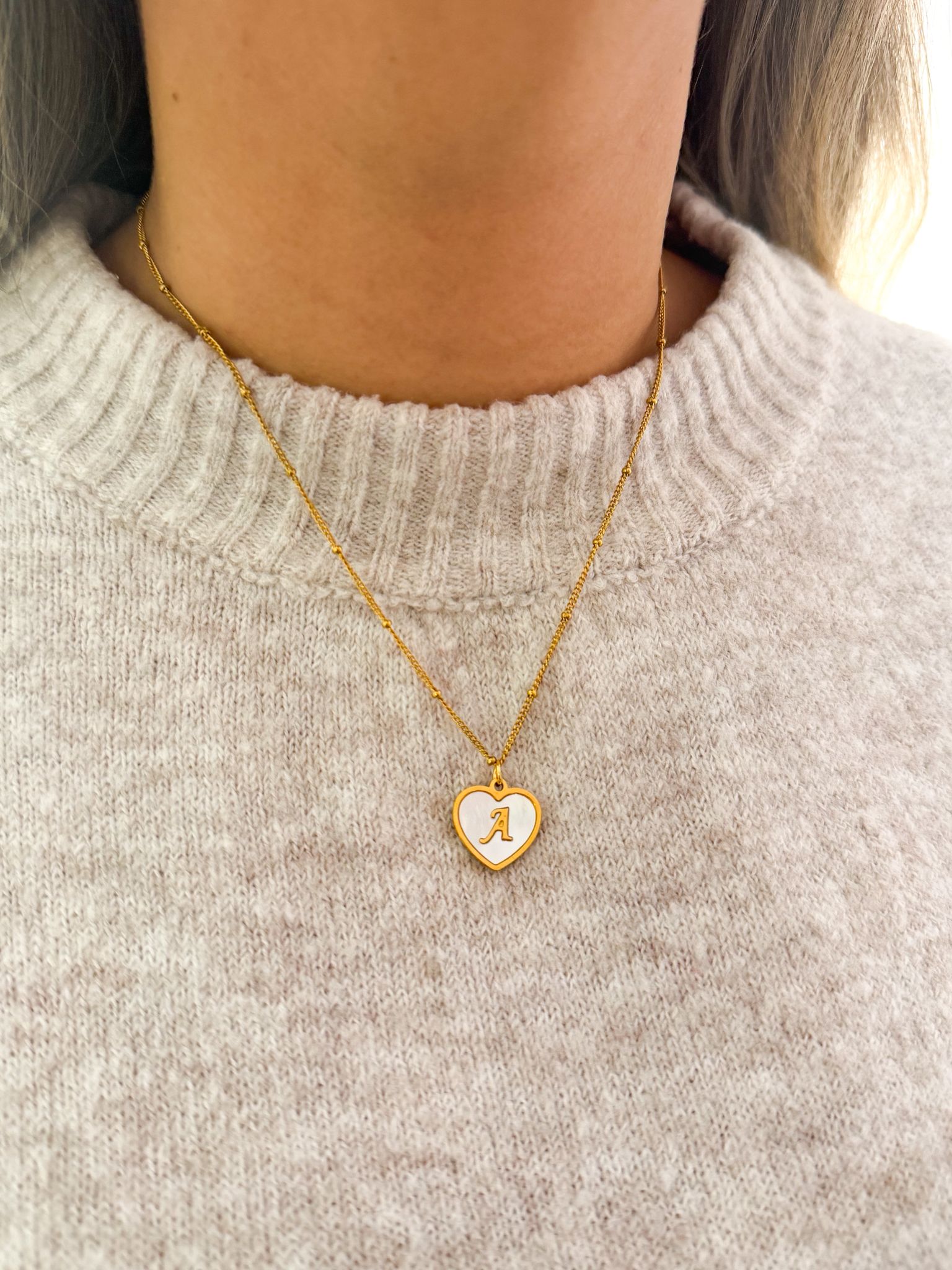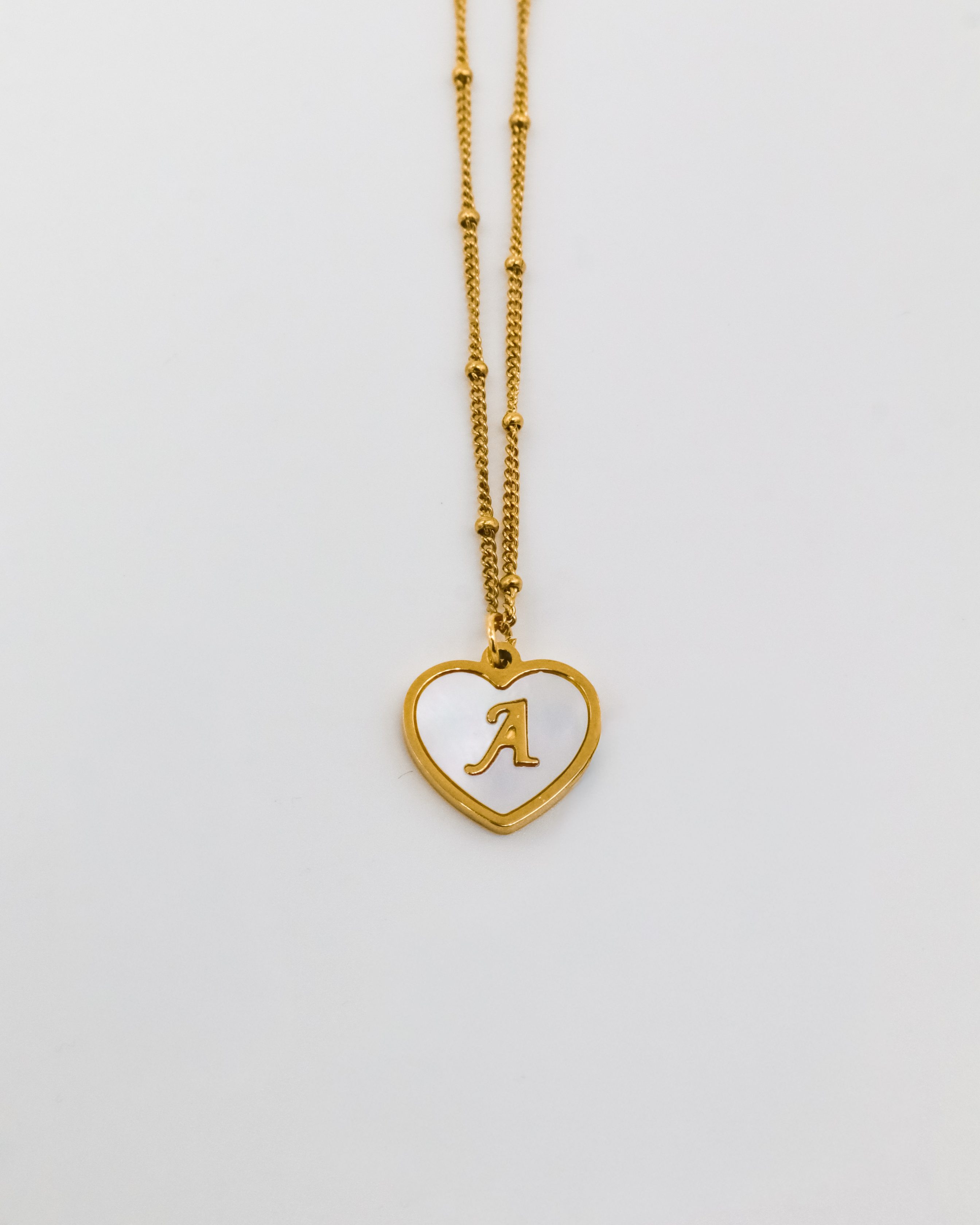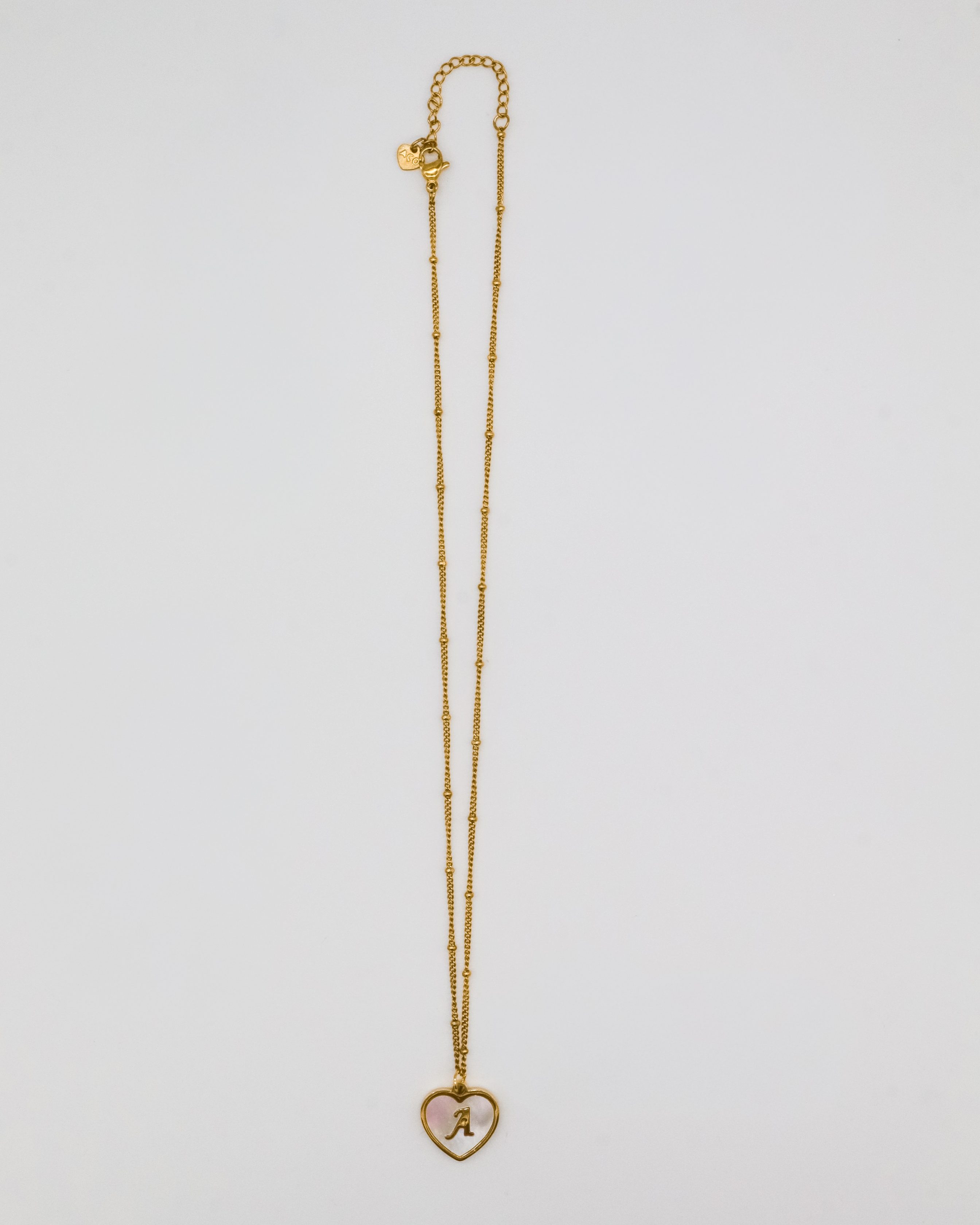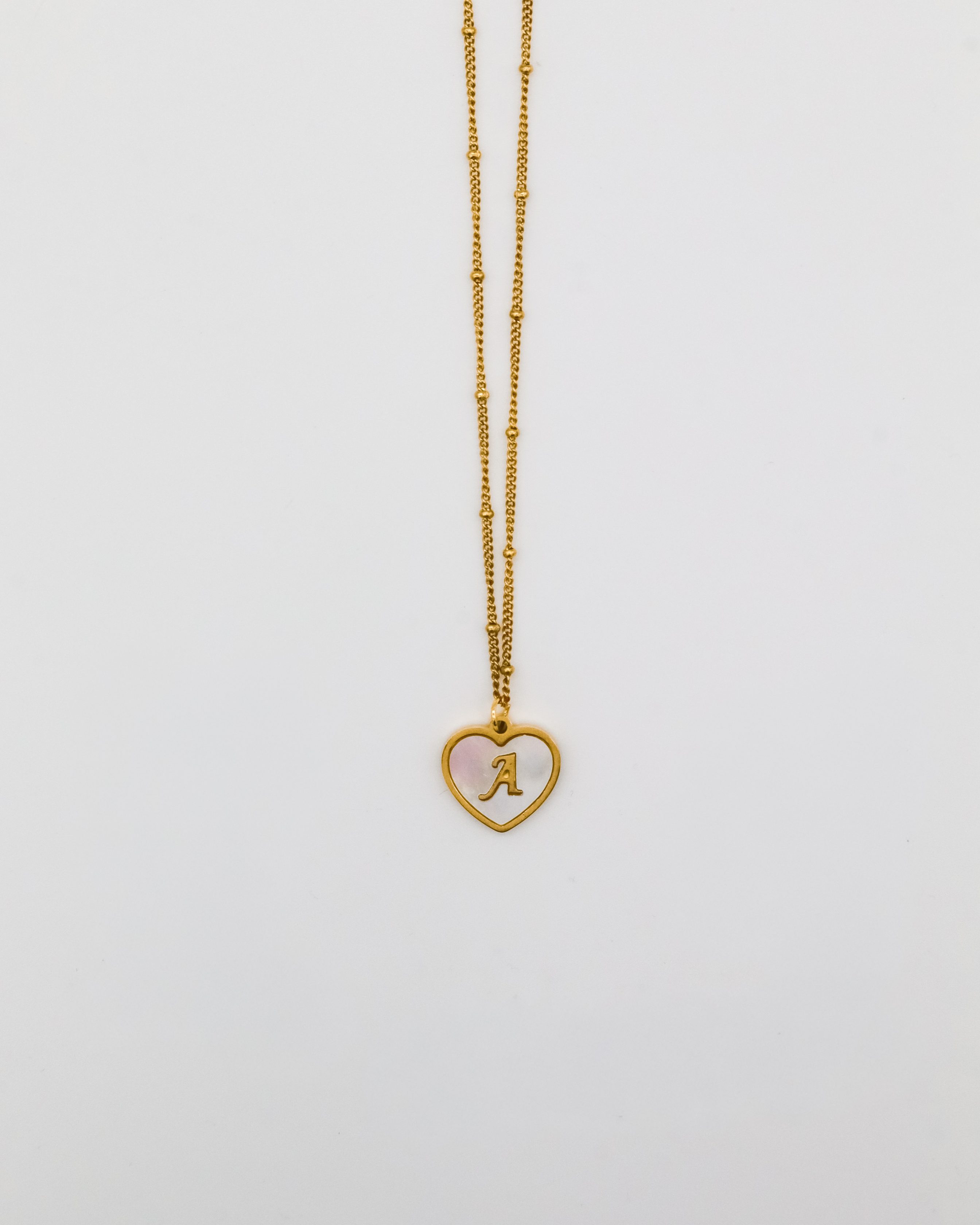 Colar em Pérolas de Água Doce e pormenores em Aço Inoxidável. Letra em zircónias e banho de ouro.