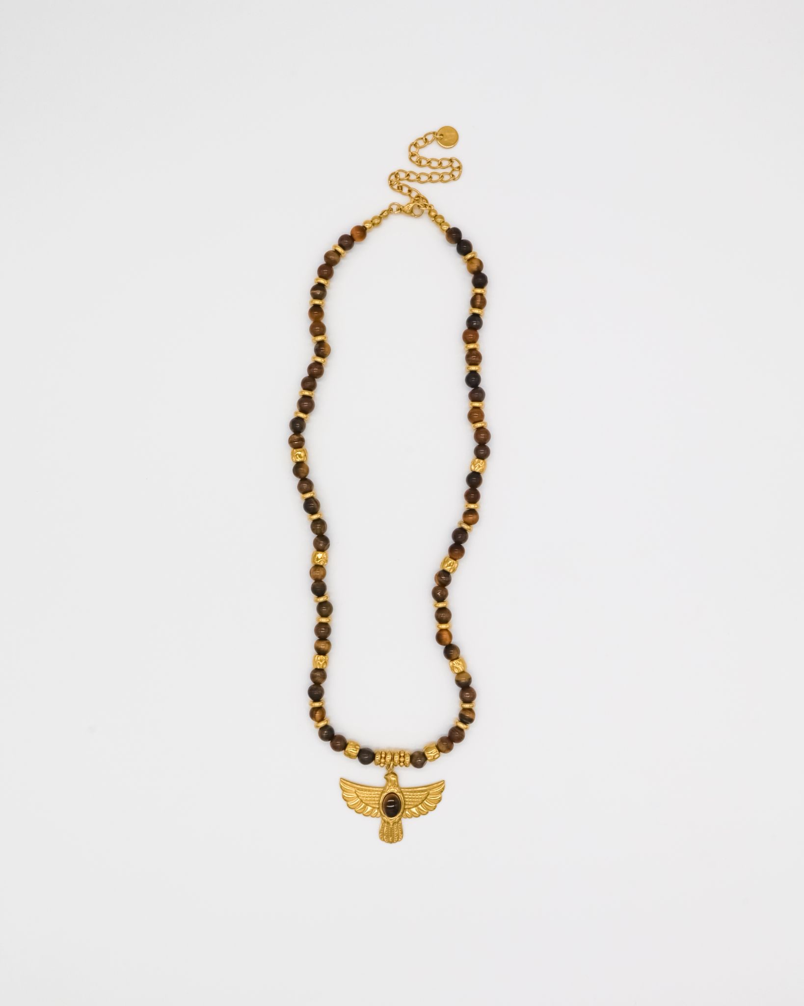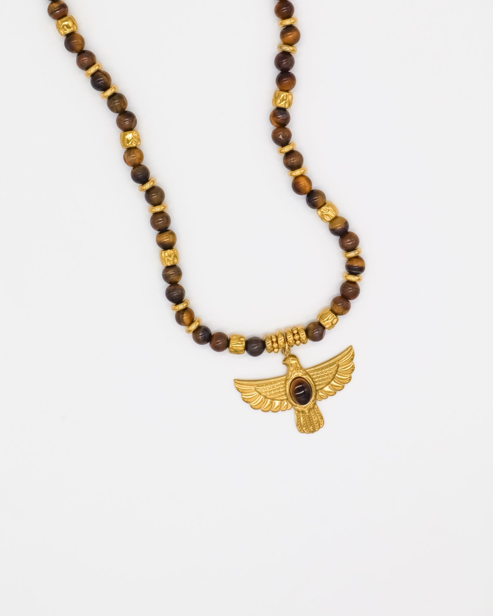 Colar em pedras frias com acabamentos e pendente em aço inoxidável.