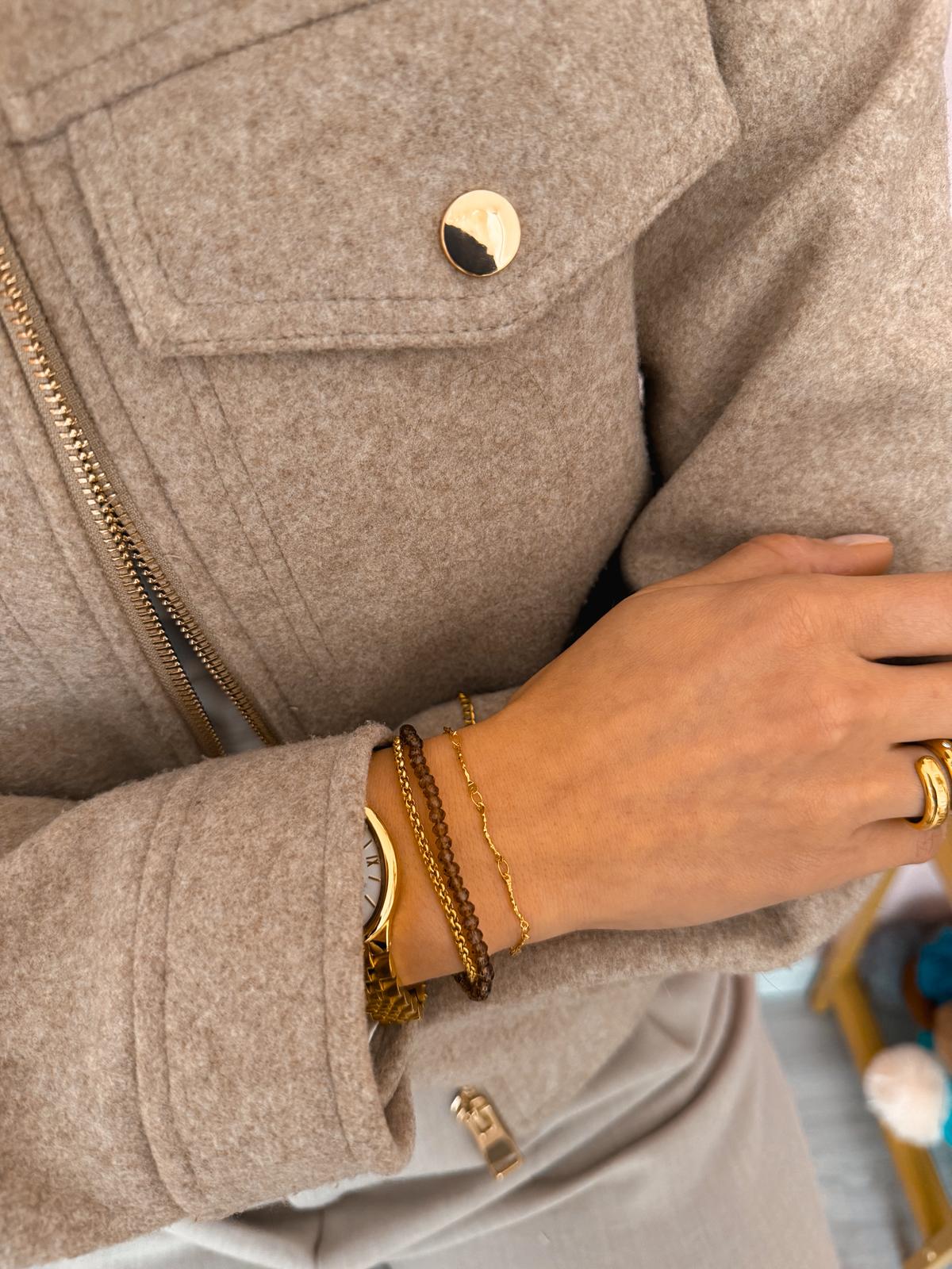 Pulseira em aço inoxidável.
