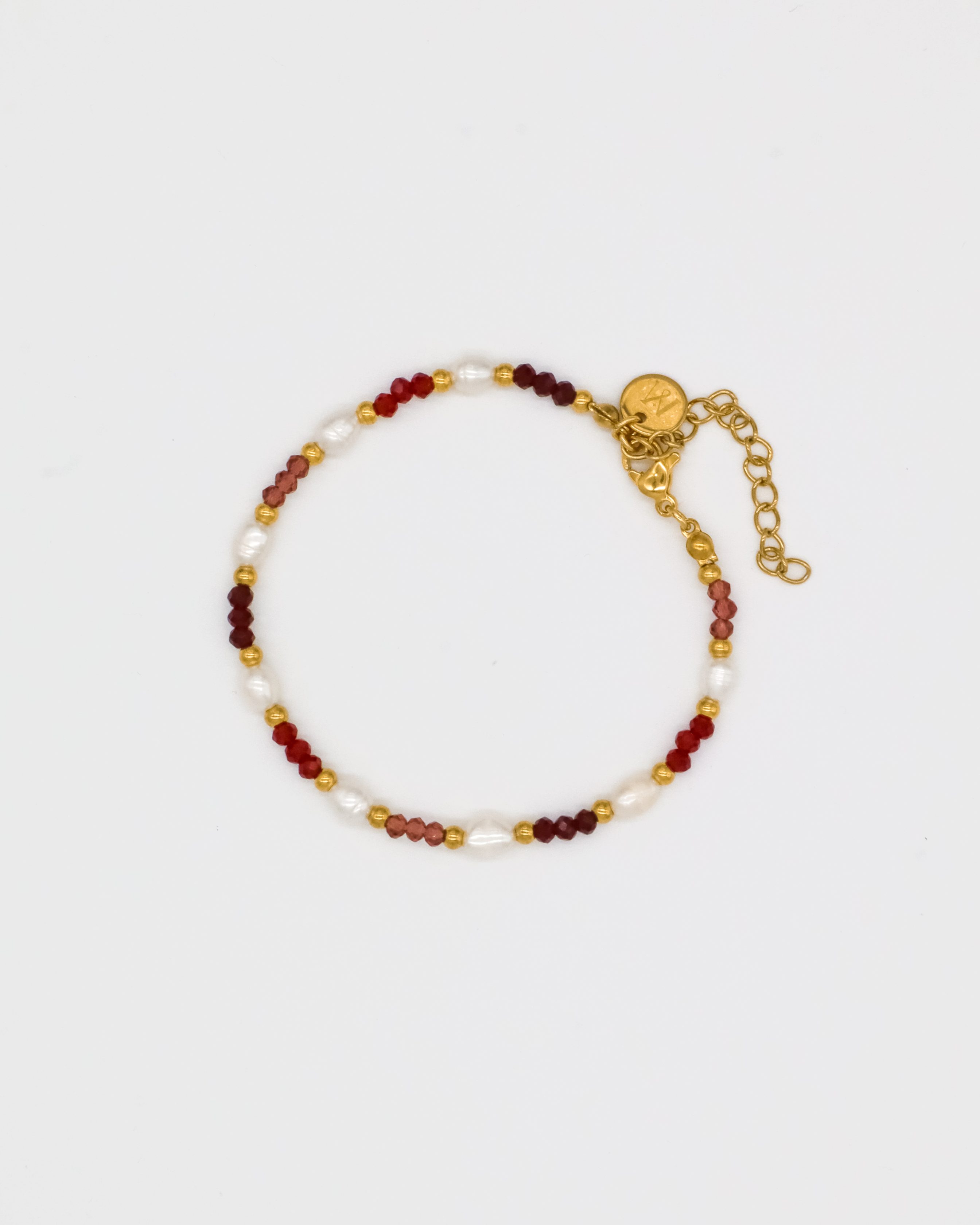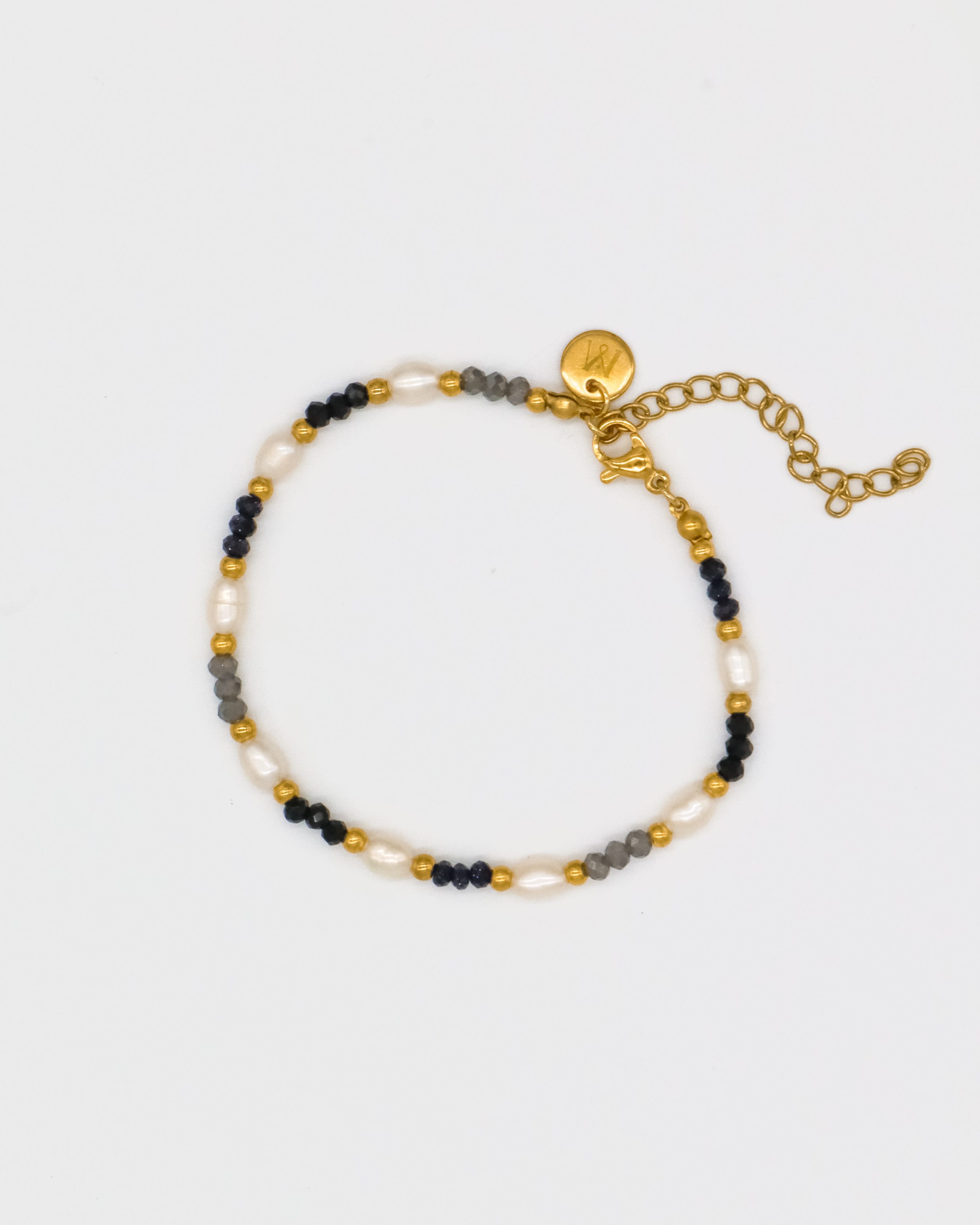 Pulseira em aço inoxidável com pedras semi preciosas e pérolas de água doce.
