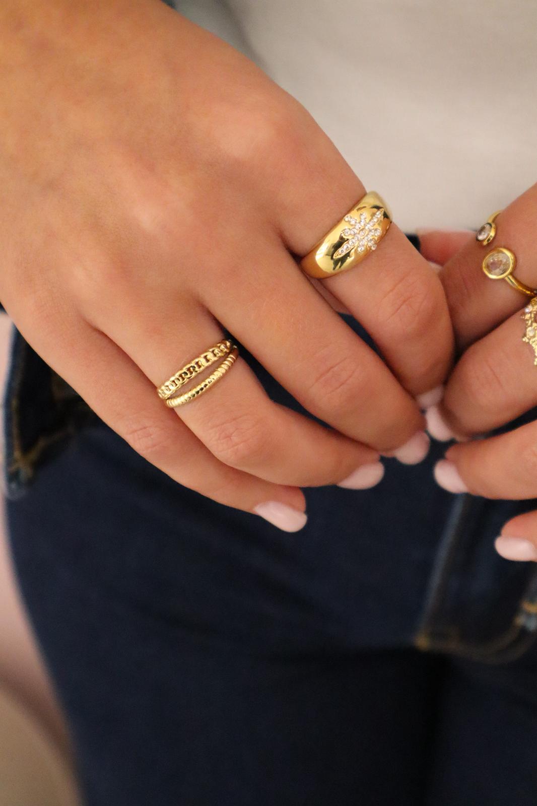 Anel ajustável em aço inoxidável.
