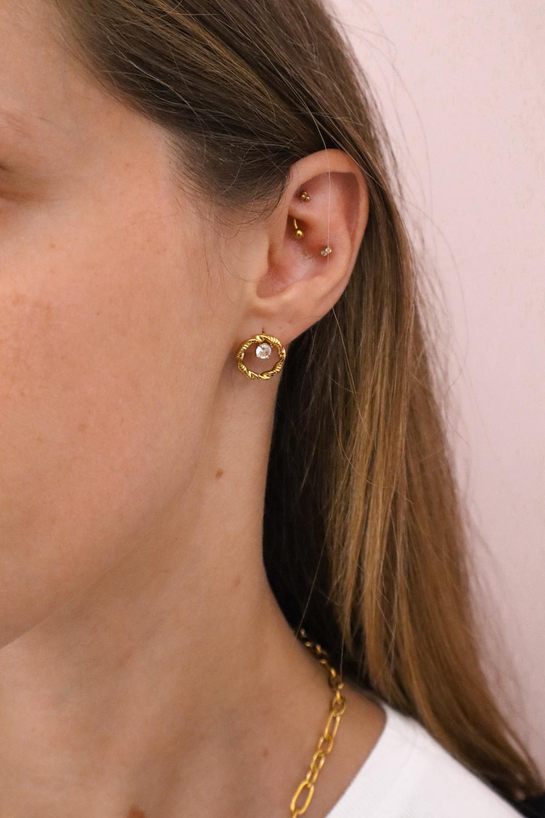 Pulseira em Pérolas de Água Doce e letra em zircónias e banho de ouro.